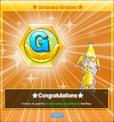 そうすると「あなたは[エンブレム内容が表示されます]のエンブレムを獲得しますか?」と聞かれますので、「Verify」を押してください。尚、欲しくないって人は「Cancel」を押すといいでしょう。「Verify」を押すと↓の画面が表示され