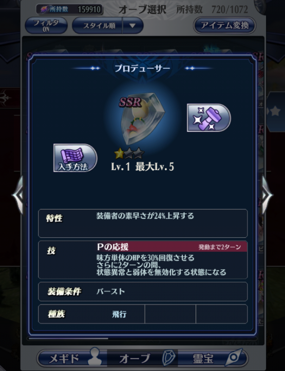 戦闘不能になった味方単体を蘇生させるオーブですぞ!なんでこんなのがSRなんでしょうな!