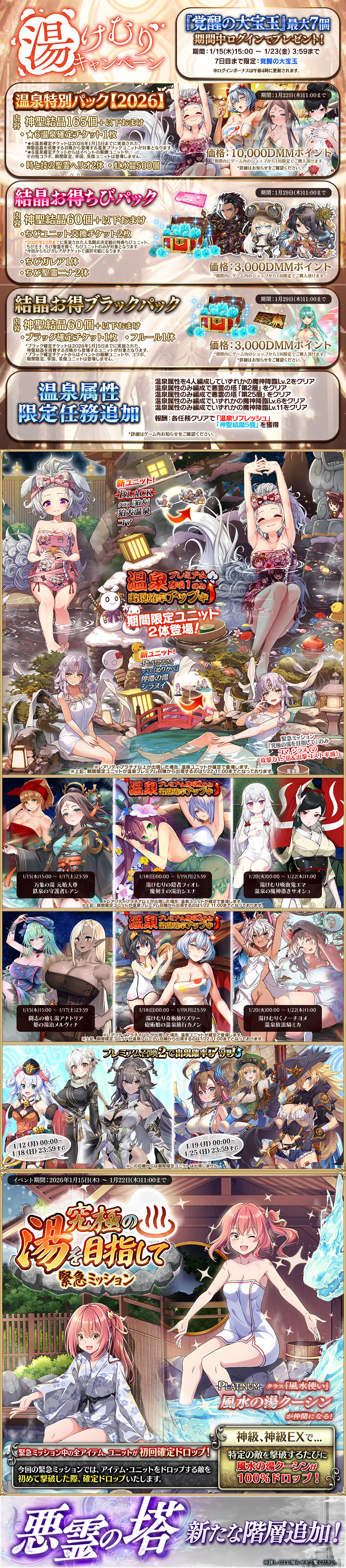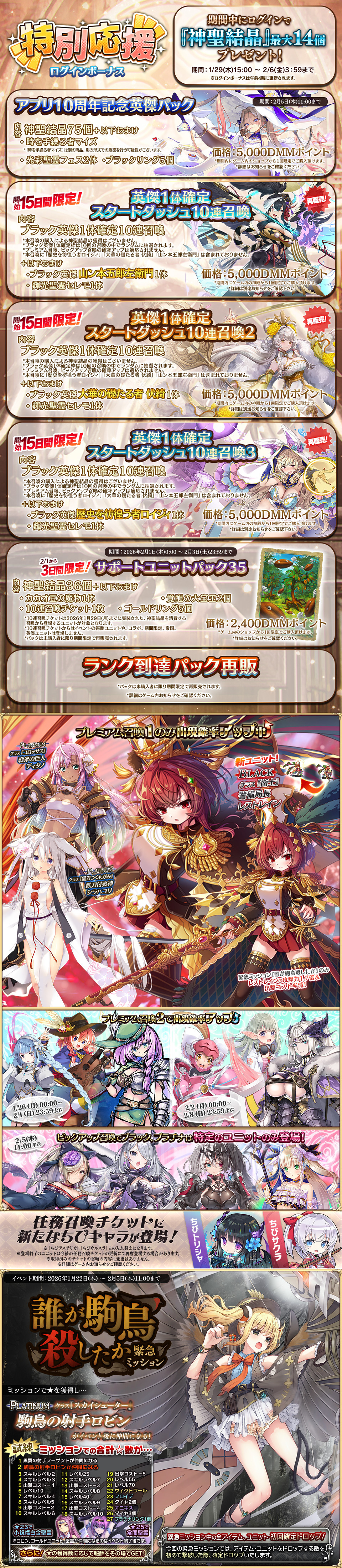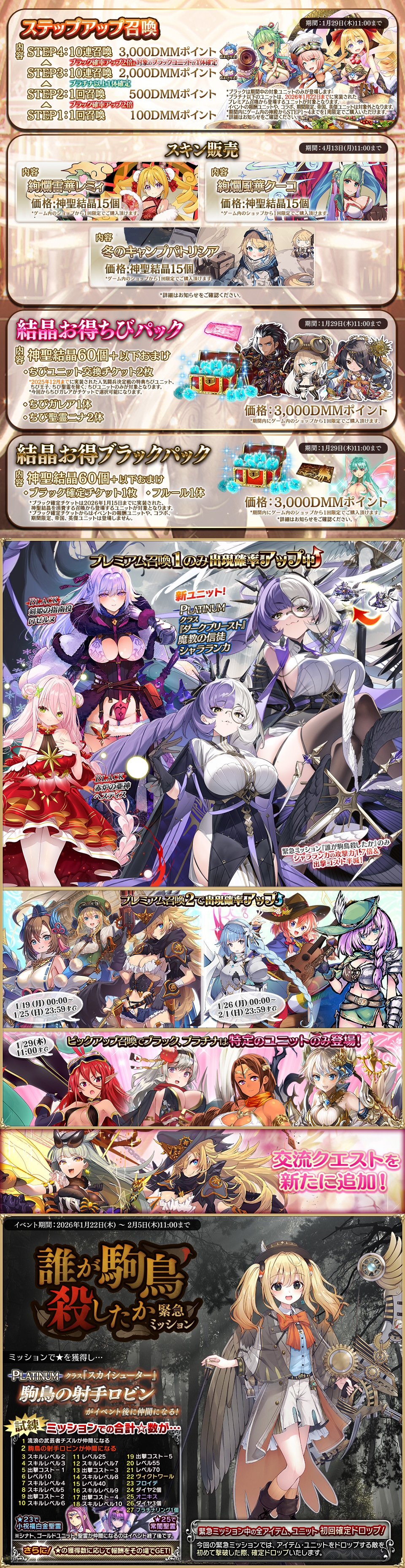 - 累計登録者数280万記念キャンペーン第一弾-神聖結晶・技強化の聖霊(1日1回最大7つずつ)(2017/01/20~2017/01/26)