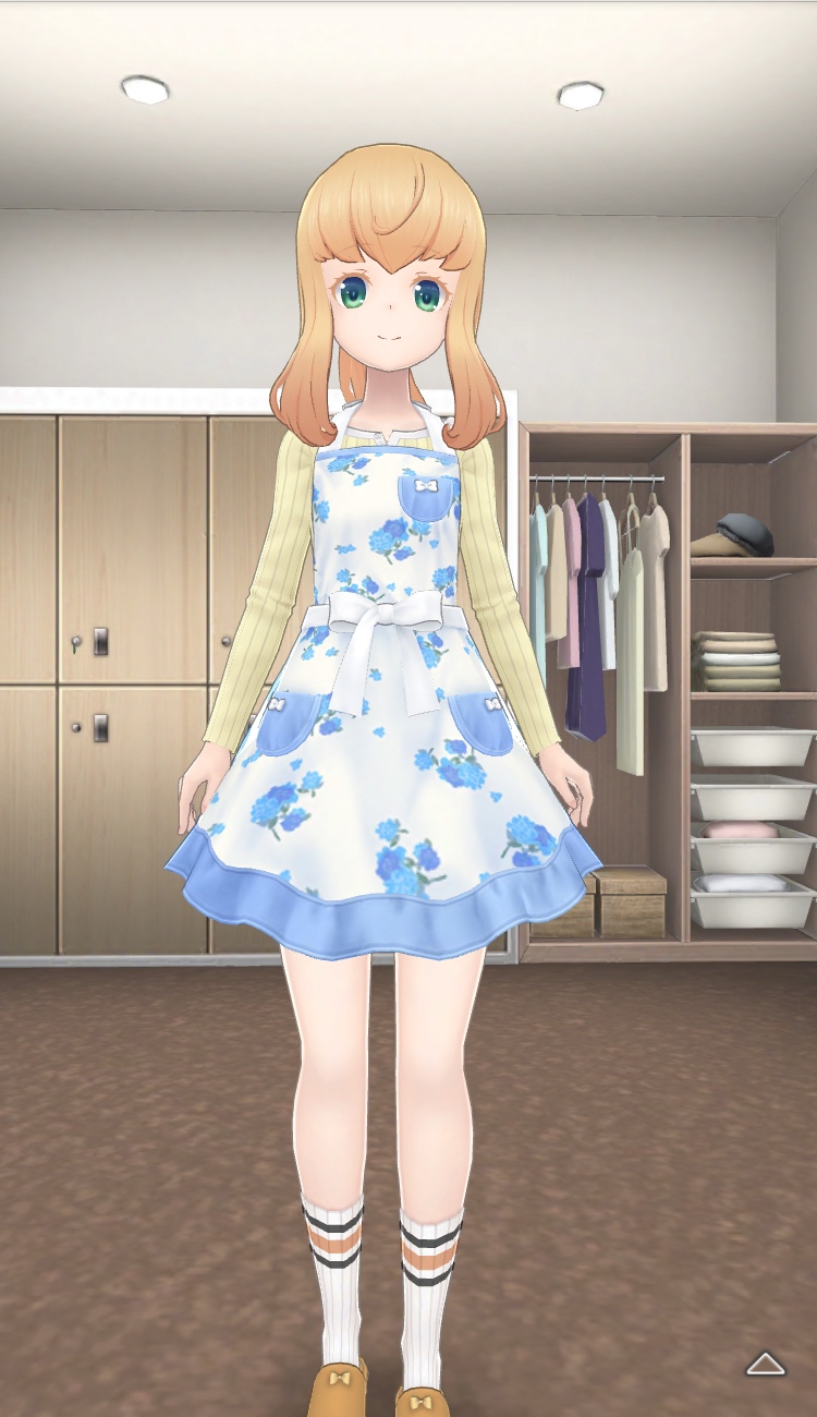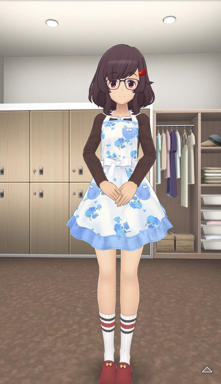 | 小倉スキップジャックスのスタジャン。数年ごとにデザインが変わり、球場や公式通販ショップにて購入できる。現モデルはどんなテイストにも合わせやすいビンテージ風。 | オフショルダーのトップスとハイウエストのタイトスカートのコーデ。奈々から大人っぽいと絶賛され、「着てみる?」と返したところ大慌てする奈々の姿が見られた。 | ふんわりとしたビショップスリーブブラウスの上にワンピースの組み合わせ。首元のチョーカーは店先で一目ぼれをして購入。しばらくの間、質素な食事になったらしい。 | ミラノシャードで購入したワンピース。アルプスに咲くリンドウをモチーフにしたという上品な青紫が美しい。腕時計は世界に誇る地元シャフハウゼンシャード製のもの。 |