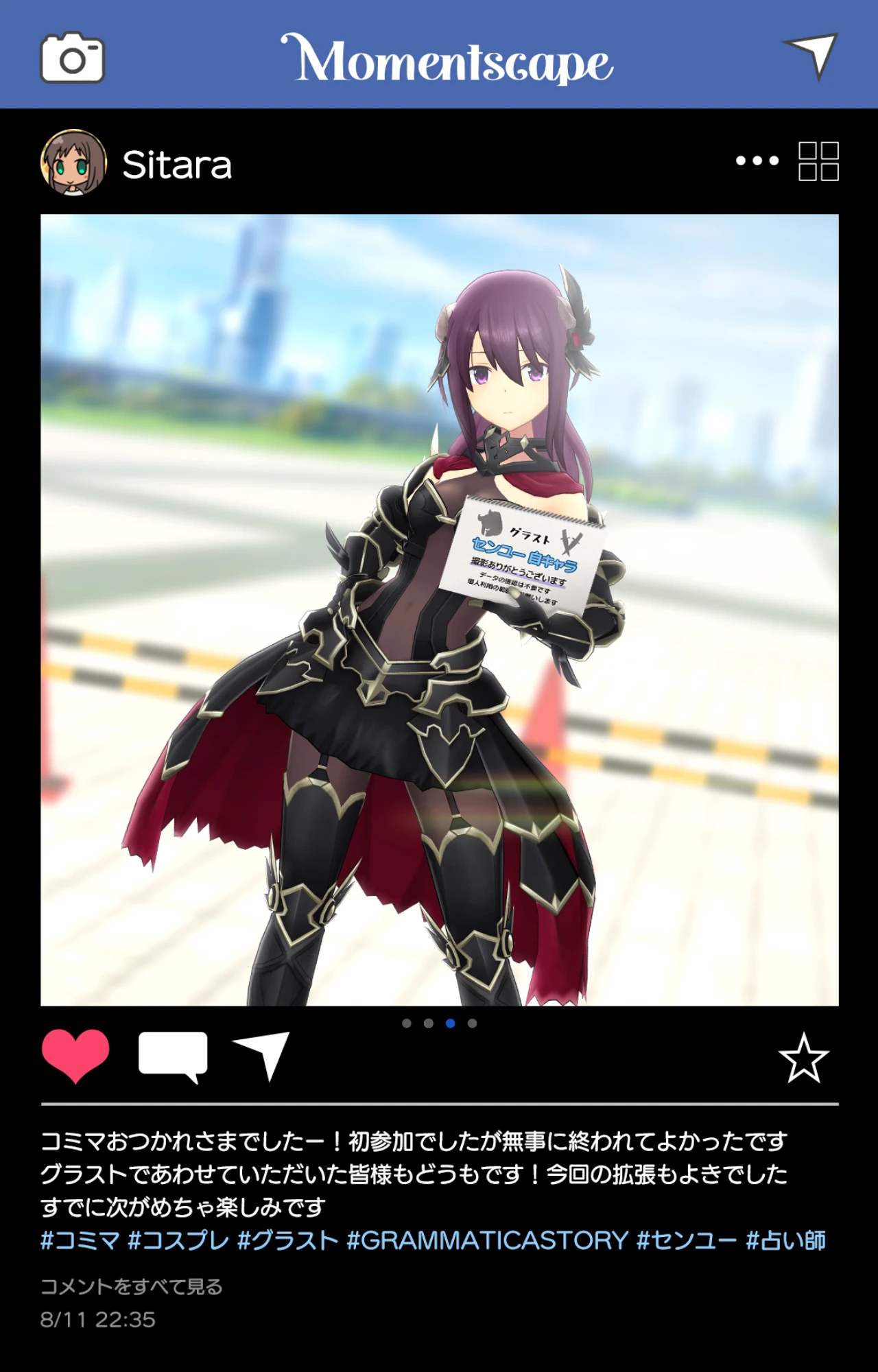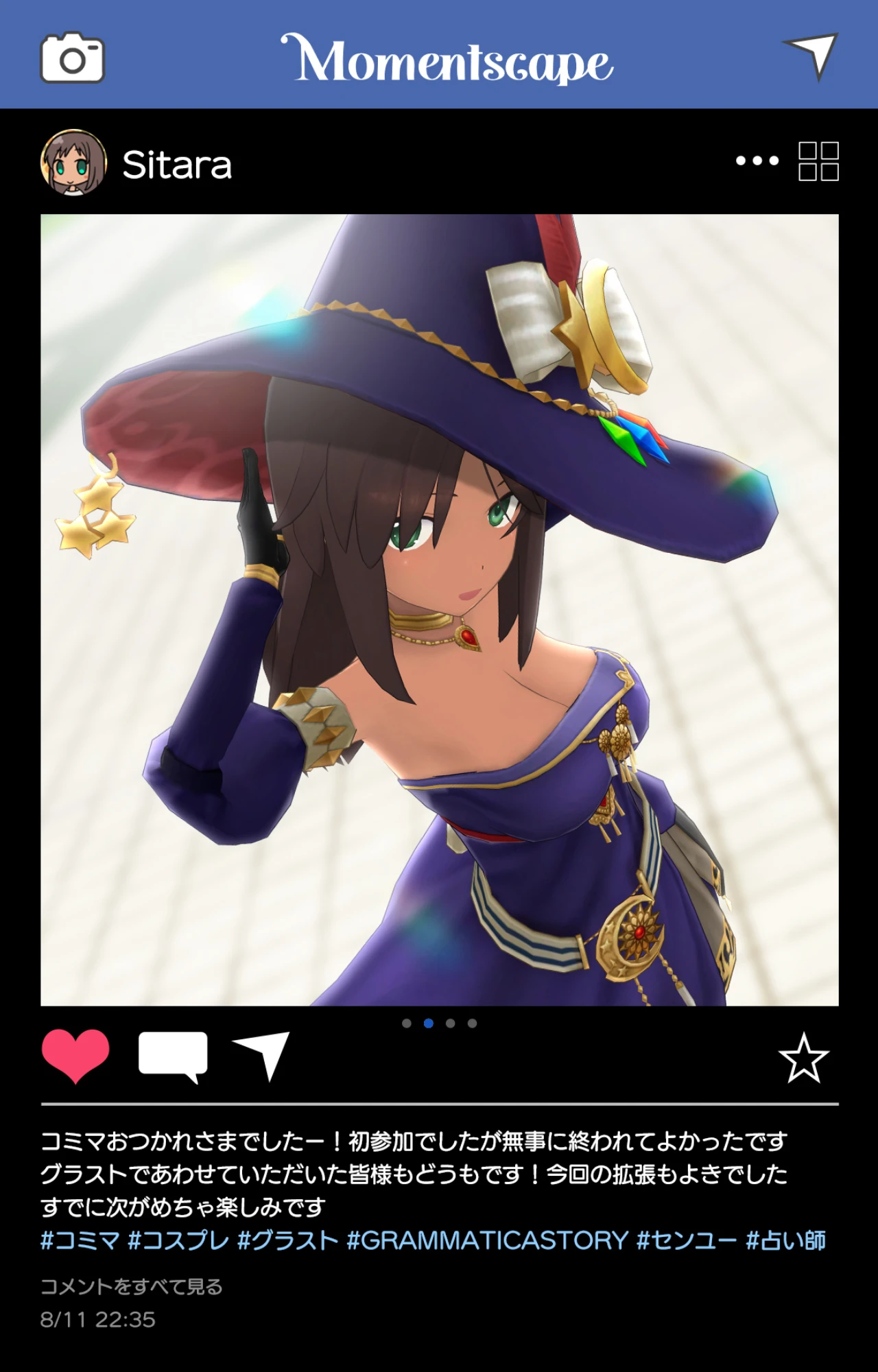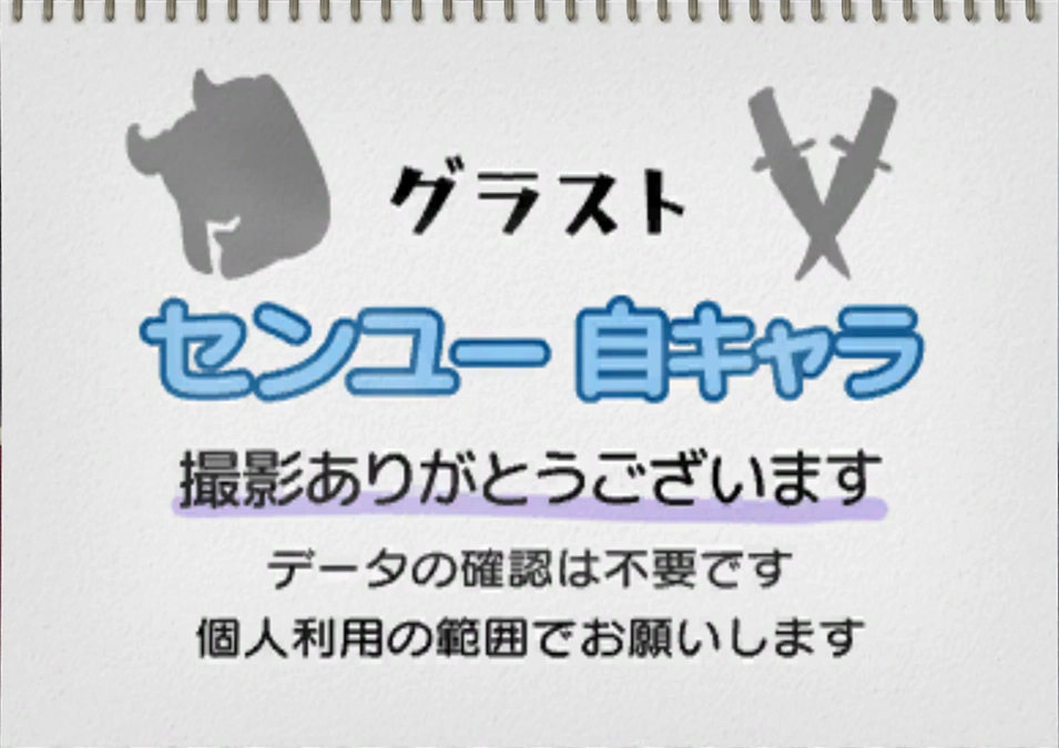 キャラの衣装がグラストコスに変化。様々なポーズをとる。