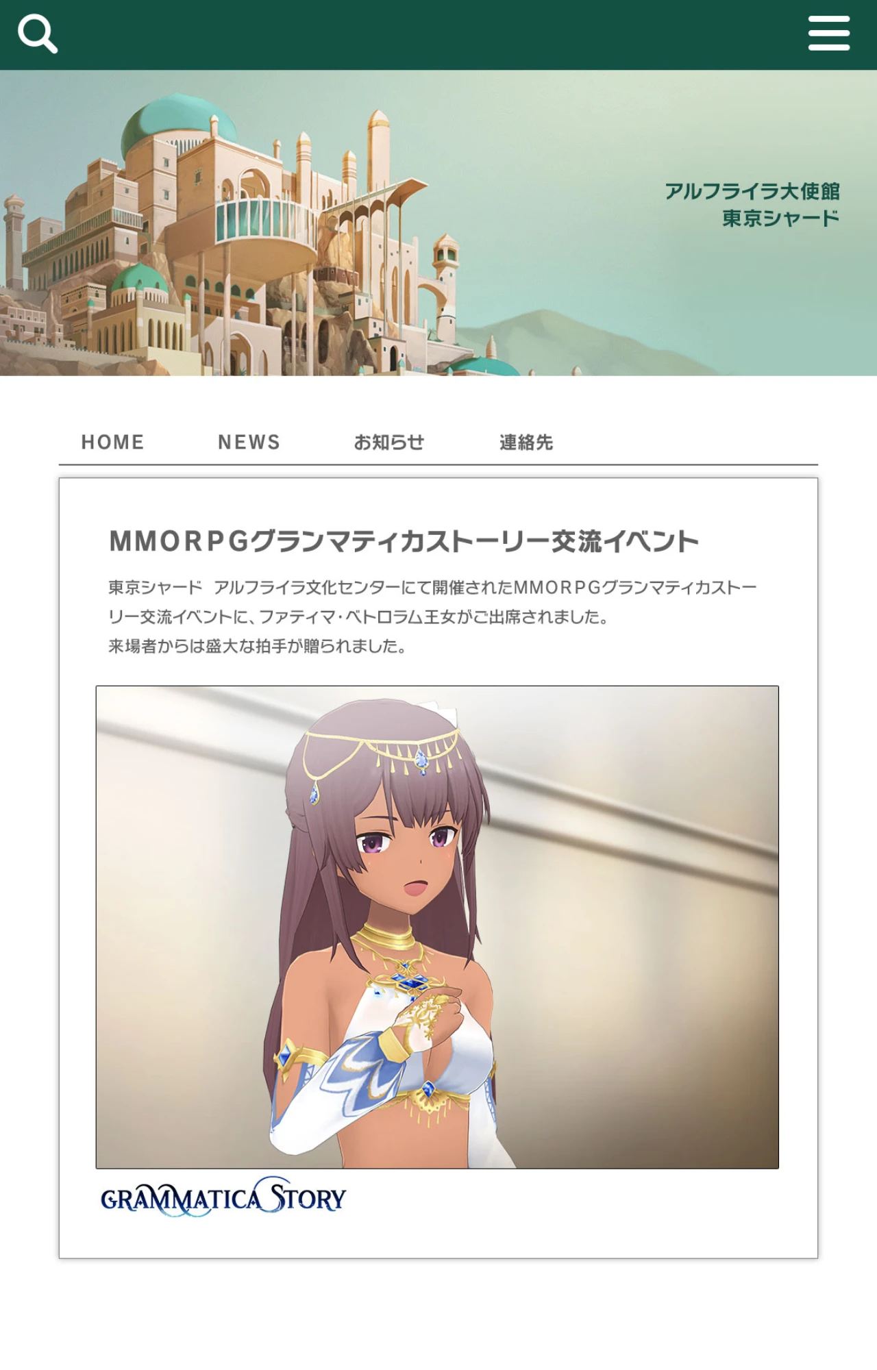 ![]() | グランマティカストーリーのマイキャラ「リーシュ」のコスプレ衣装。王家おかかえの職人たちの手で精巧に再現されており、高いクオリティを誇る。 |