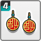 | 倒福があしらわれたイヤリング。福を呼ぶゲン担ぎとして逆さになった福の字の飾りが鮮やかに耳元を照らしてくれる。 |