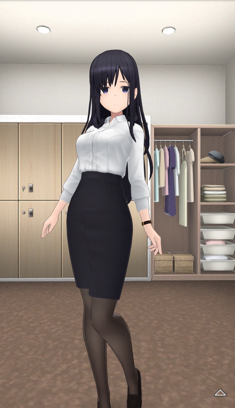 | スノーホワイトのブラウスがクールな印象の先生コーデ。ペンシルスカートはストレッチ素材を使用し、バックスリットと相まって足運びは軽快。腕時計はシャフハウゼン製。 | ホワイトのブラウスが清潔感を演出する先生コーデ。糸が痛んでいたのか、初日の授業中にボタンが飛んでしまい、その後の休み時間に改めて全て縫い付け直した。 | アイボリーのブラウスが柔らかい印象の先生コーデ。初日はストッキングを穿いていたが盛大に伝線してしまい素足で通勤。現場で評判が良かったため、そのスタイルを継続中。 |