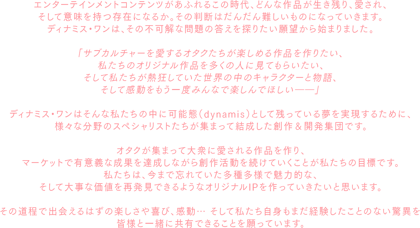ついでに社名(ディナミス・ワン)の由来も公式サイトに説明が出ていた おい文字色もっと見やすいやつにしてくれWikiでは黒背景にしちゃうぞ