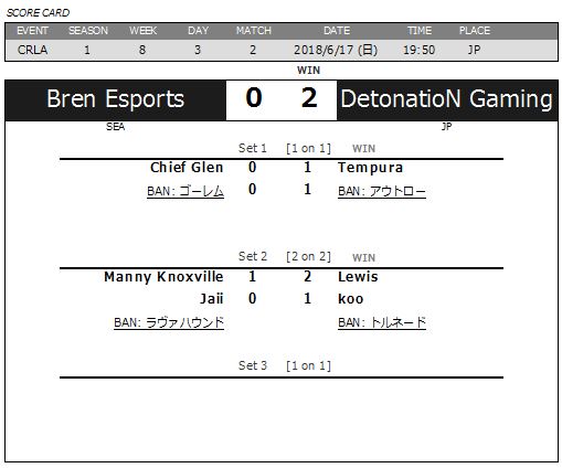 Season 1 Week 8 Day 3 の試合結果(スコアカード)