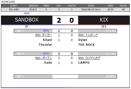 - SANDBOX、今週KOR勢としての初白星をストレート勝ちで掴む -- 2018-09-17 (月) 08:07:18