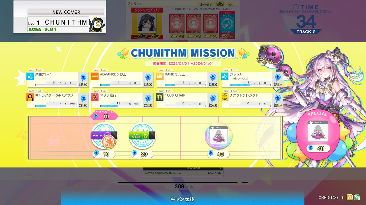 - キャラクターRANKアップのミッションの進めやすさはCHUNITHMのシステムが大きく影響する。少ない経験値でRANKアップできるキャラを選択し、多くの経験値を入手できるようにすると効率がいい。