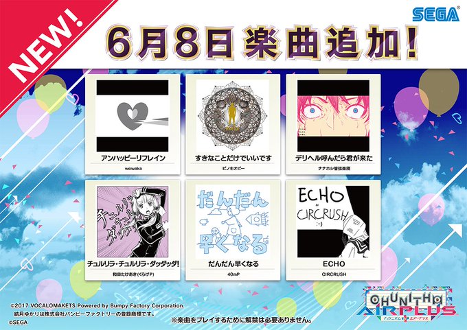 2017年6月8日(木)より新曲が追加されます。