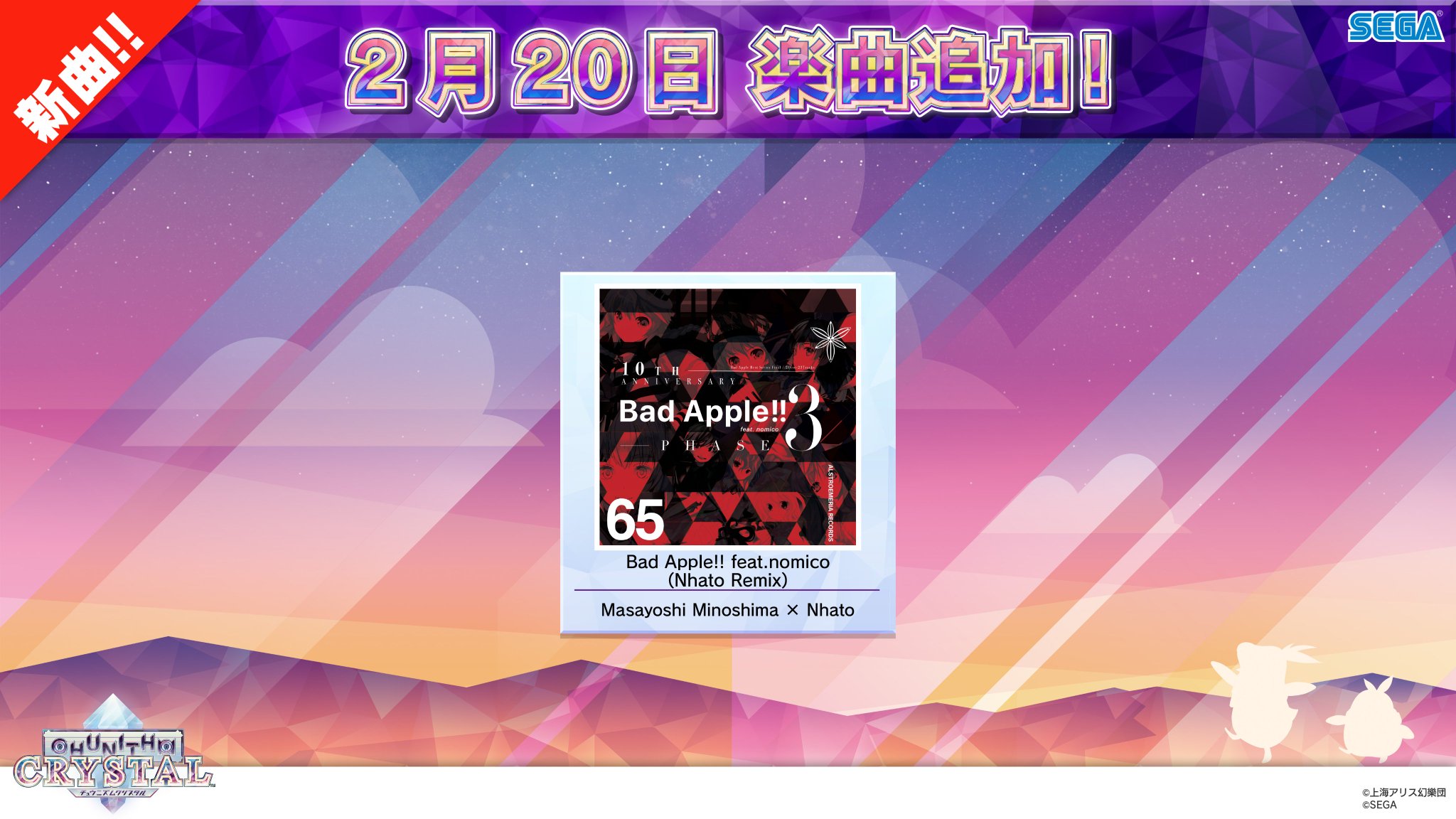![]() | Bad Apple!! feat.nomico (Nhato Remix) | Masayoshi Minoshima × Nhato | 2 | 6 | 8+ | 12+ |