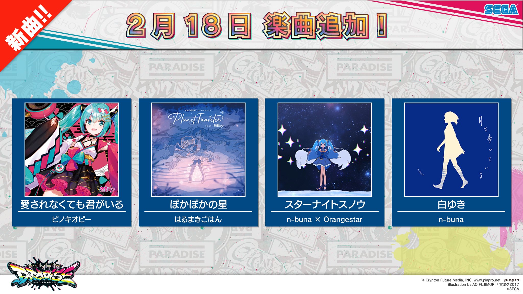 2021年2月18日(木)より、新曲が追加されます。