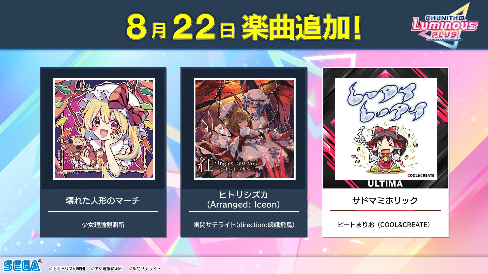 東方Projectジャンルの通常配信曲にもかかわらず、壊れた人形のマーチのプレイ背景が「東方Project汎用」ではなく「LUMINOUS汎用」になっている。
