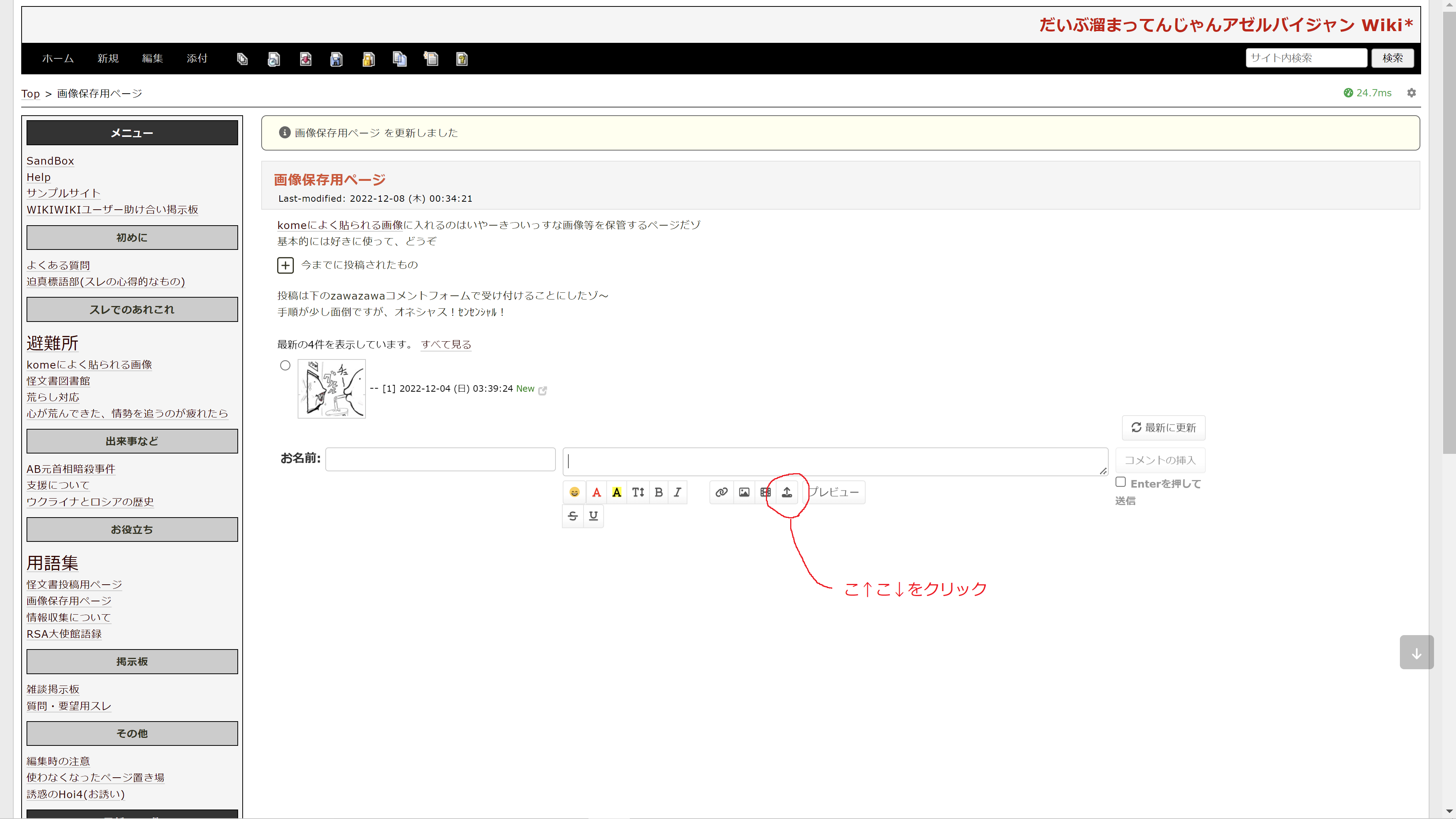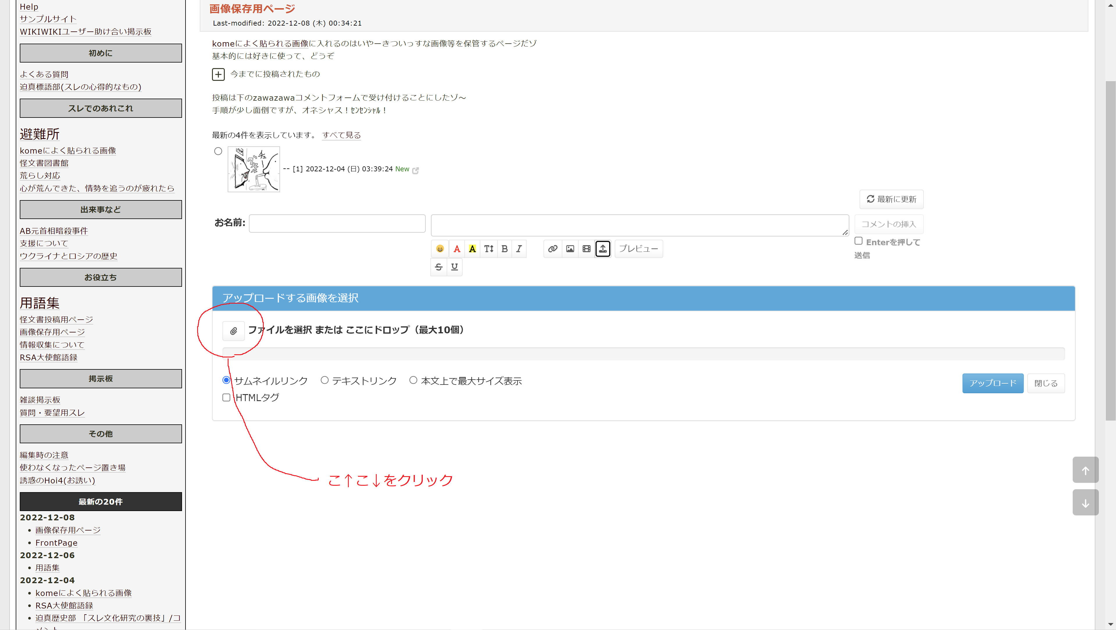 WIKIにて画像を投稿するための手順を示したところだゾ~