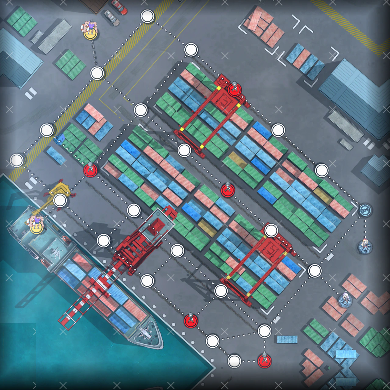 ランダムの敵位置にビーコンを呼び出し、その位置に存在するユニットの種類に応じて強化効果を得る。HG<火力上昇>、SMG<命中上昇>、RF<射速上昇>、AR<防御上昇>、MG<回避上昇>、SG<破甲上昇>、ビーコンの位置にユニットが存在しない場合、以上のすべての強化効果を得る。 - デンジャラス・アラーム