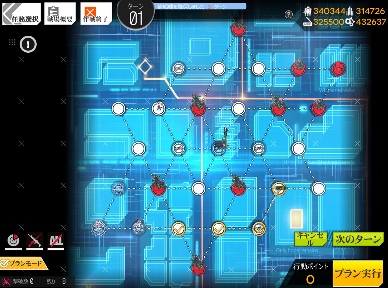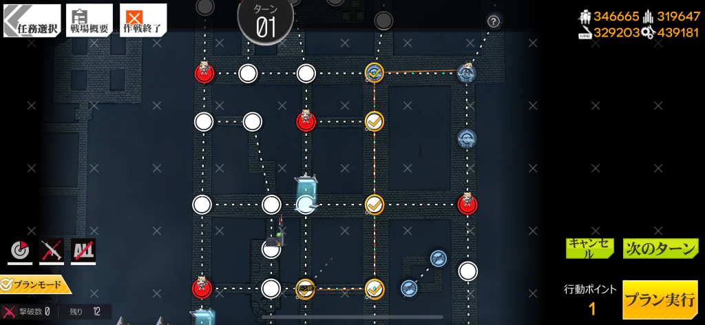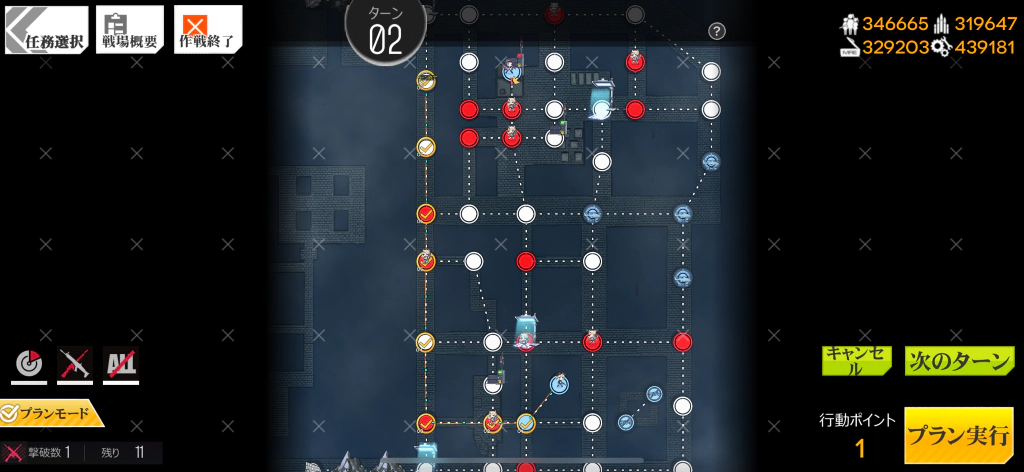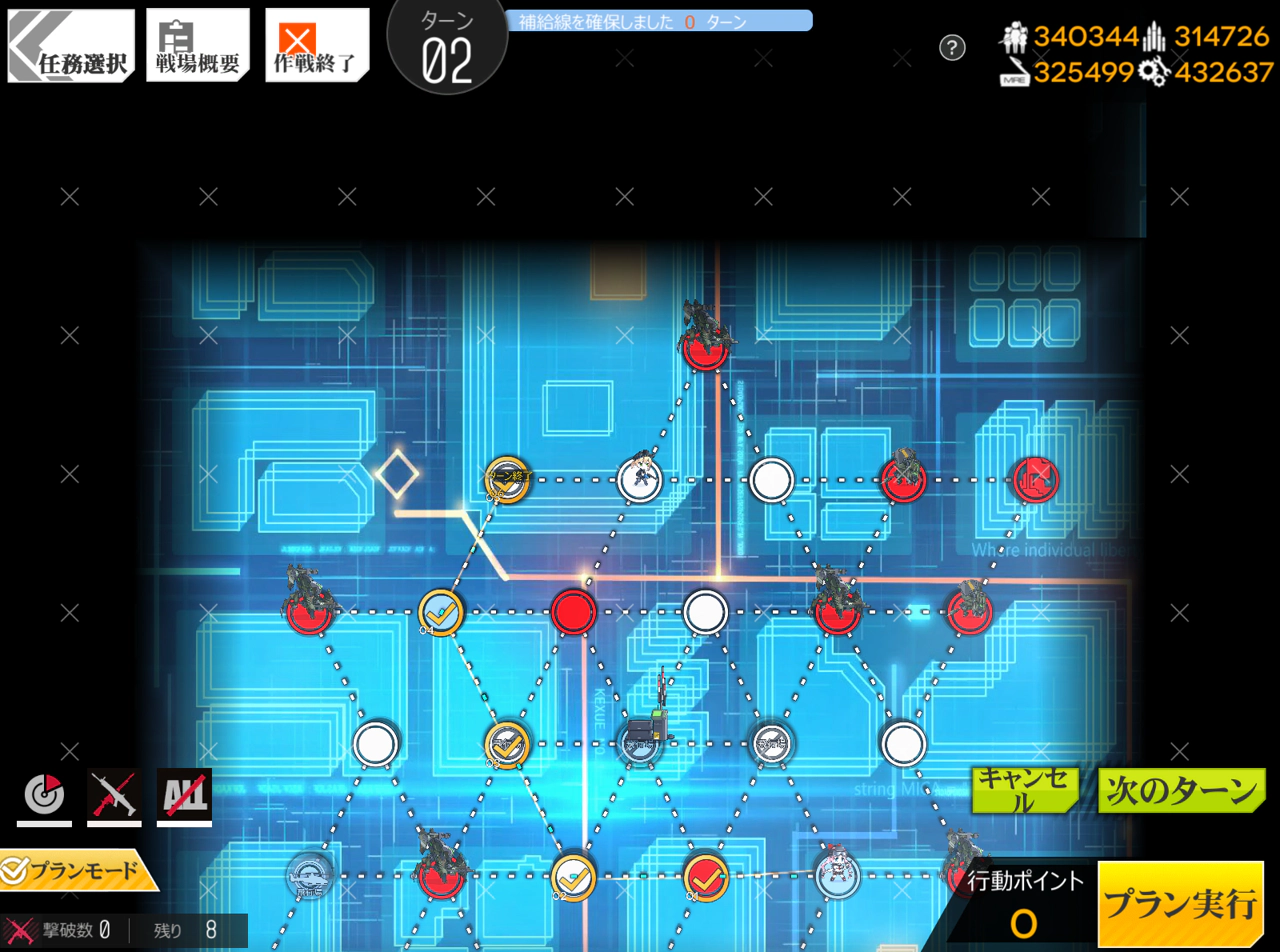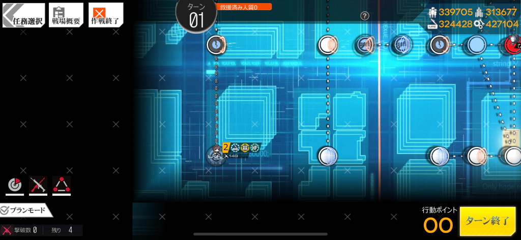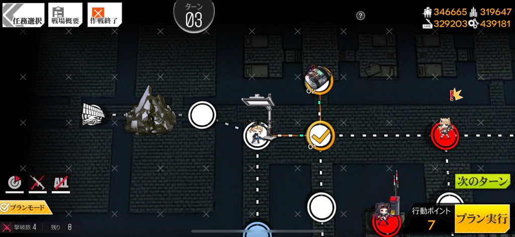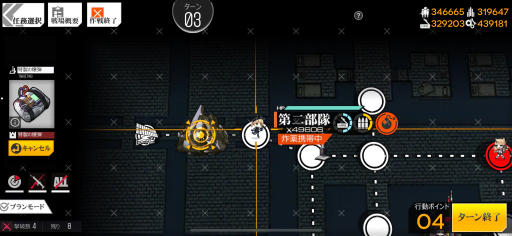 | S評価条件 | 損失及び撤退部隊を出さずに 4ターン以内で勝利 そして敵対目標を2個撃破する そして人形を2名救出する |