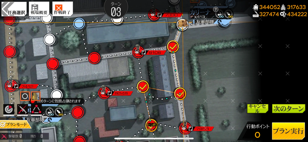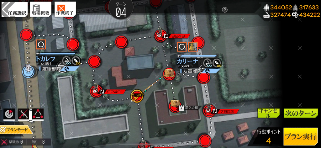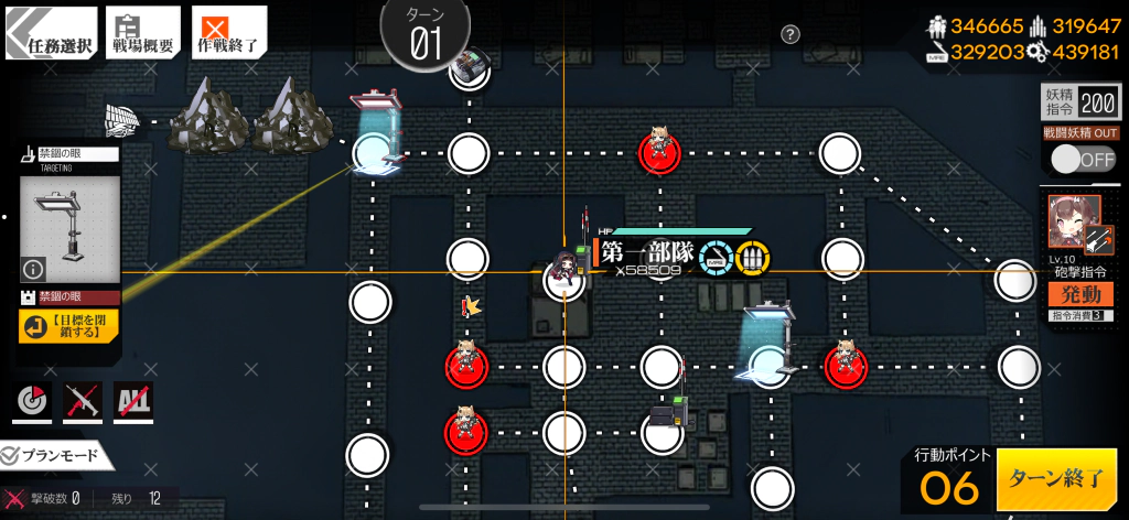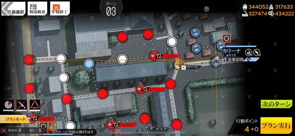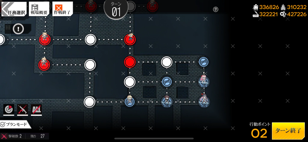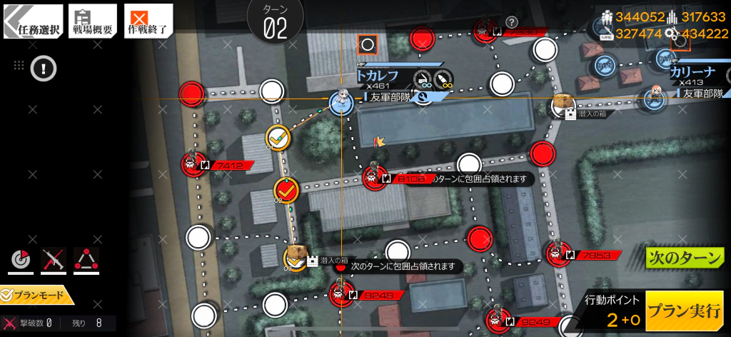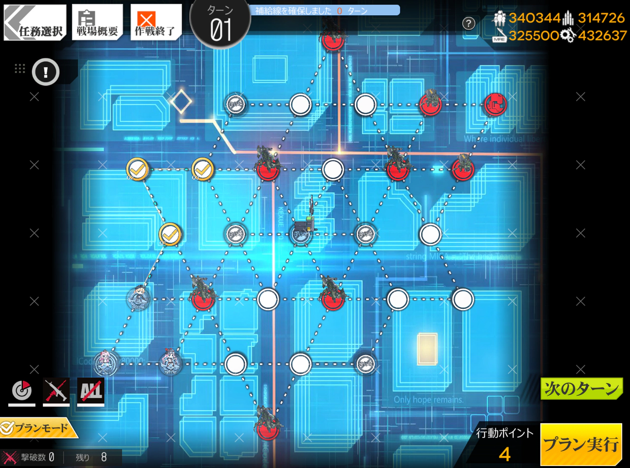 | S評価条件 | 損失及び撤退部隊を出さずに 4ターン以内で勝利 そして敵対目標を2個撃破する そして人形を2名救出する |