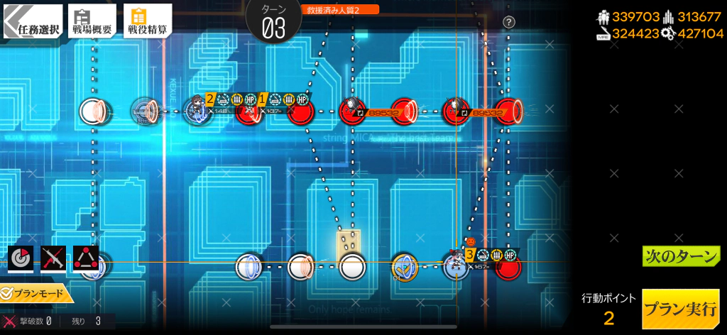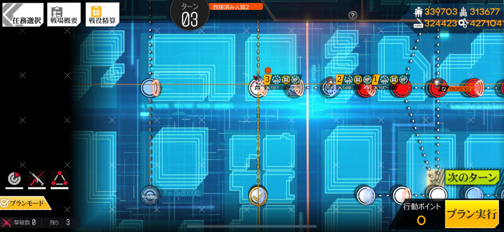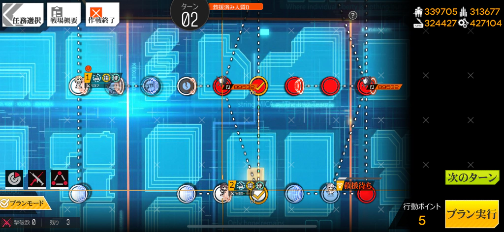 | S評価条件 | 損失及び撤退部隊を出さずに 5ターン以内で勝利 そして人形を3名救出する |