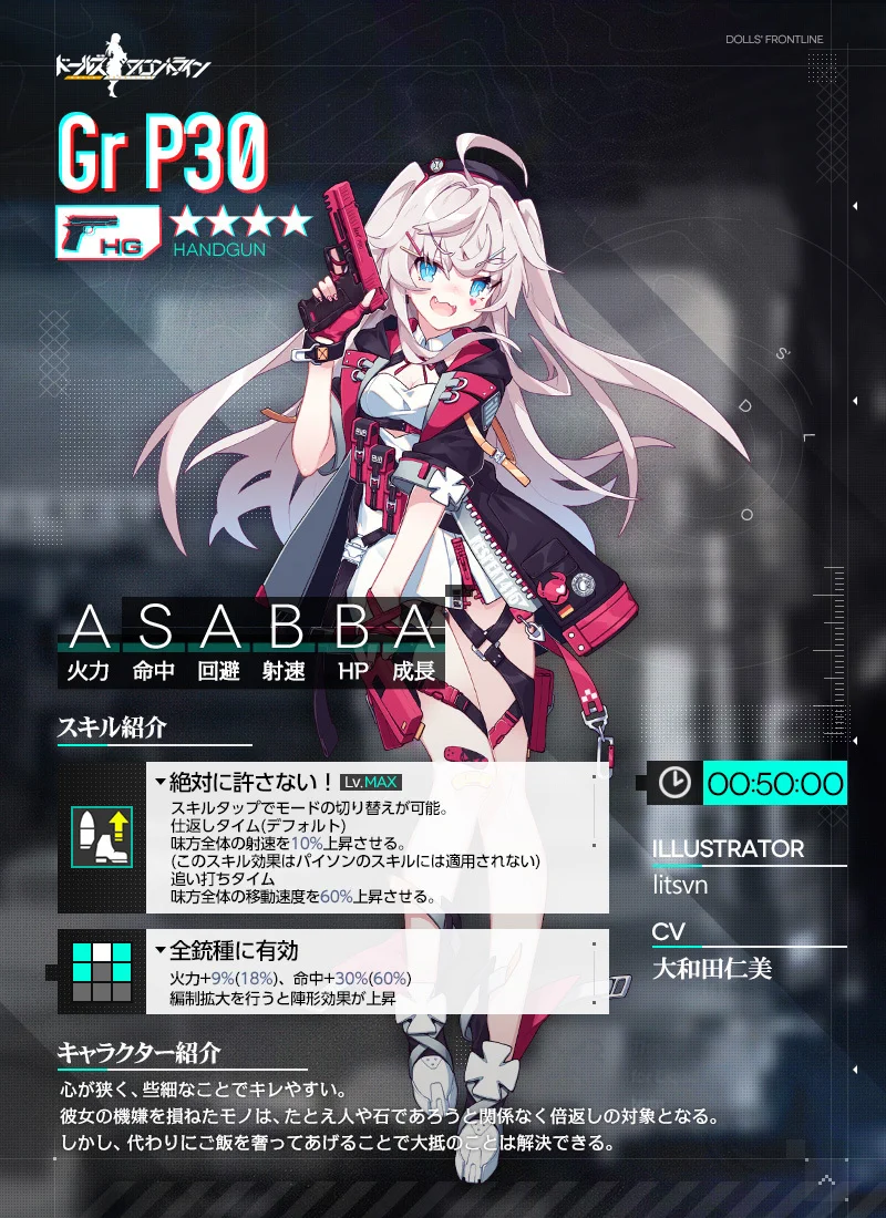 - Gr MP7が自己バフなのに対してGr P30は全体バフである。