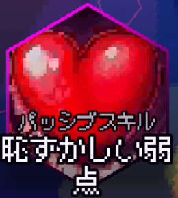 | 恥ずかしい弱点 | なし | 敵が持つ[快楽]1につき物理耐性が0.4、雷耐性が0.4減少します。 |