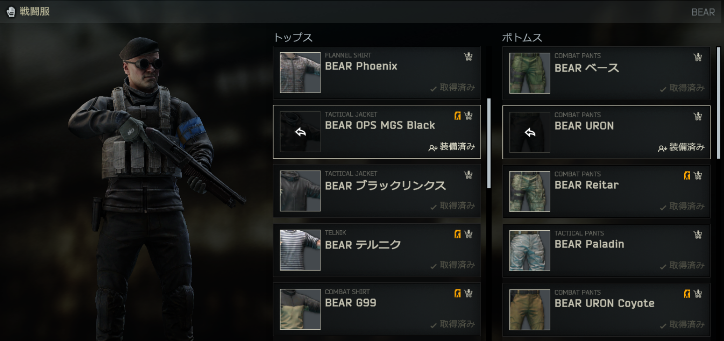 また、USECとBEARで別々の服が用意されていますが、異なる陣営の服を着用することは不可能です。