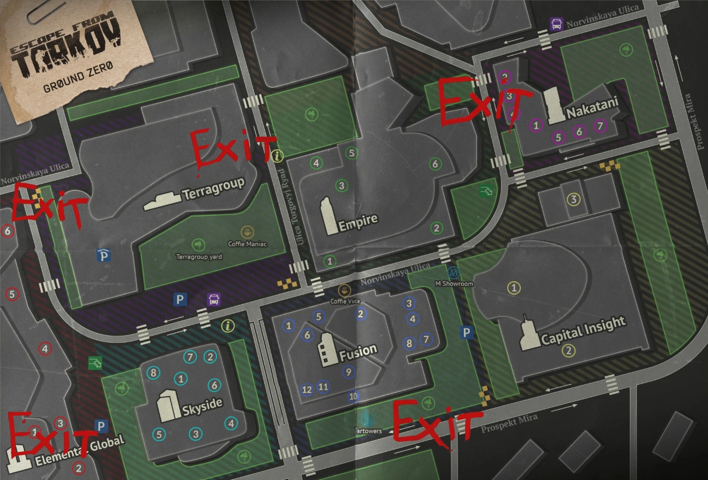 - PMCとSCAVの出撃方法と、自キャラのスポーン位置によって脱出地点が異なるので必ず確認する事。(一部MAPは脱出地点固定)