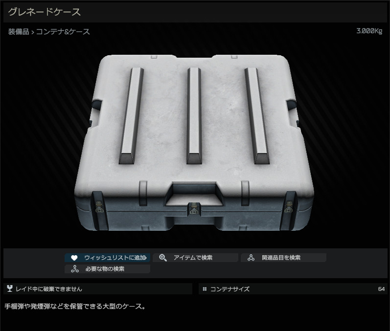 | Grenade case 「Grenades」 | 3.000 | 3x3 | 64 (8x8) | 611% | グレネード UZRGM grenade fuze グレネードランチャー用弾薬 |