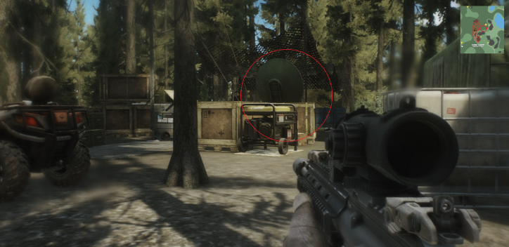 - USECキャンプの衛星アンテナ付近の木箱の中にTerraGroup "Blue Folders"を隠す