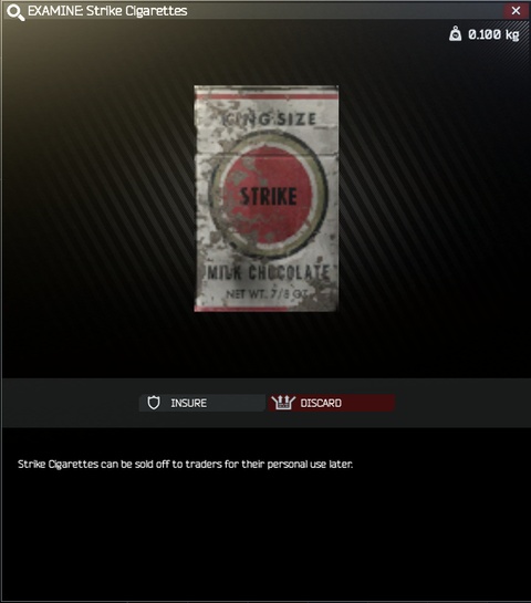 | Strike Cigarettes ストライク シガレット 「Strike」 | 0.020 ( - ) | Bad Habit:5個(in raid) | 〇 | _ | _ |