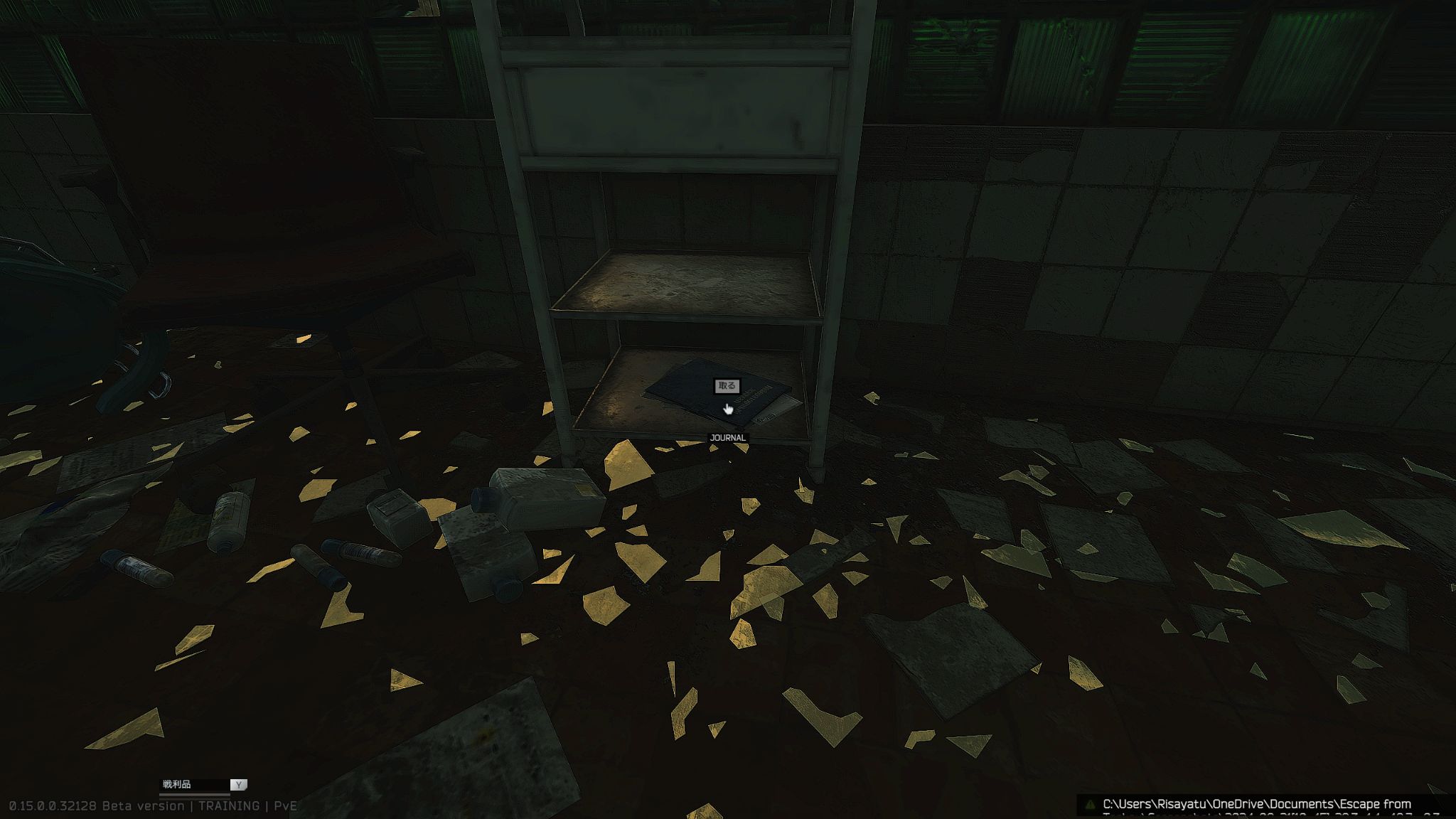 | Lab journal | 1 | 引き渡す | - | このアイテムはタスクを受注している間にのみ見つけることができます。 このアイテムを所持したまま死亡すると失います。ランスルーでも納品可能です。 |