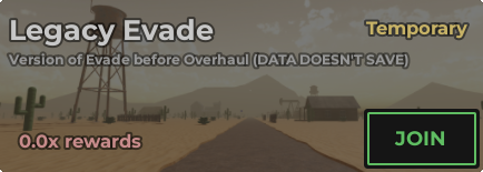 このモードは、オーバーホールアップデート以前のEvadeをプレイすることができます。