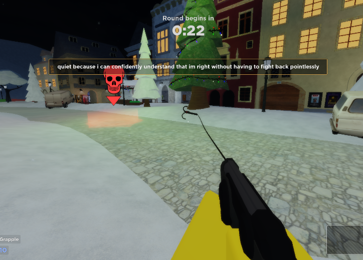 このマップは"広場"は広くとも、マップは狭いですね走っていても、マップにある大きな氷の塊に乗ったとしても捕まります。そしておおきな欠損があり下記の通りにこのマップ、まともにGrappleが使えないんです。