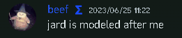 Jardの元ネタはよくわかっていないがDiscordでBeefchoplets本人が、「私のスキンをモデルに作成した」と発言している。(冗談)