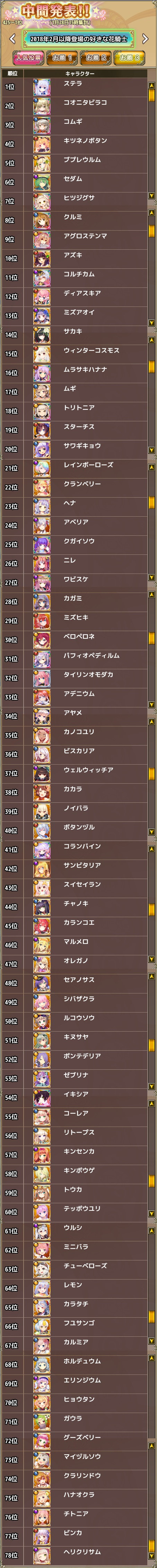 ┣第1回 繁華祭 ┣第2回 栄華祭 ┣第3回 光華祭 ┣第4回 才華祭 ┣第5回 精華祭 ┣第6回 万華祭 ┣第7回人気投票 ┣7周年人気投票! ┣7.5周年記念特別 人気投票 ┣8周年人気投票! ┣8.5周年人気投票! ┣9周年人気投票! ┗10周年人気投票