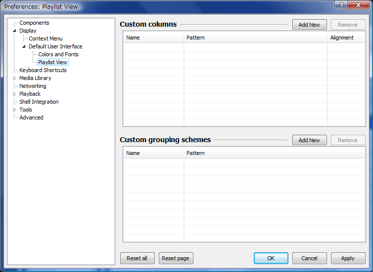 foobar2000と関連づけされたファイルのコンテキストメニューに表示される項目の設定。