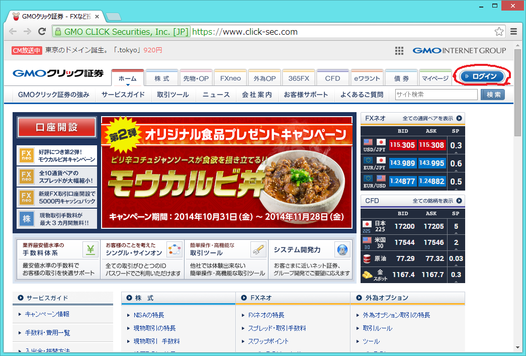 - https://www.click-sec.com/を右クリックして、[新しいウィンドウで開く(W)]をクリックする。