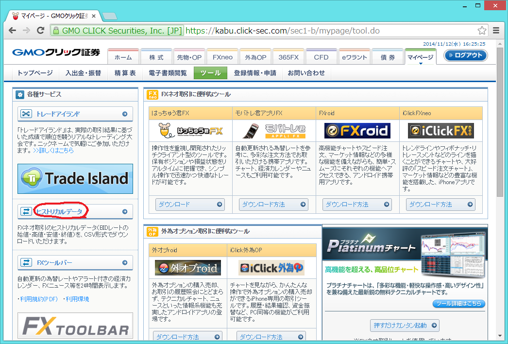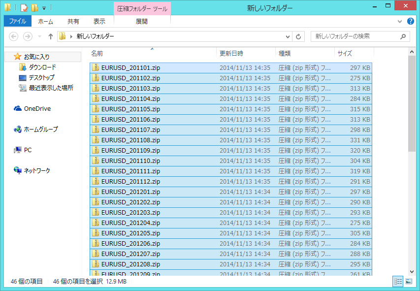 - 欲しいヒストリカルデータをダウンロードする。このwikiでは、ユーロドルのヒストリカルデータをダウンロードすることを前提にする。