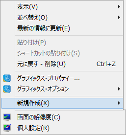 - デスクトップの何もないところで右クリックして、[新規作成(X)]を選んで、[テキスト ドキュメント]をクリックする。