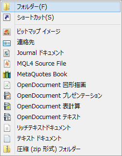 - デスクトップの何もないところで右クリックして、[新規作成(X)]を選んで、[フォルダー(F)]をクリックする。