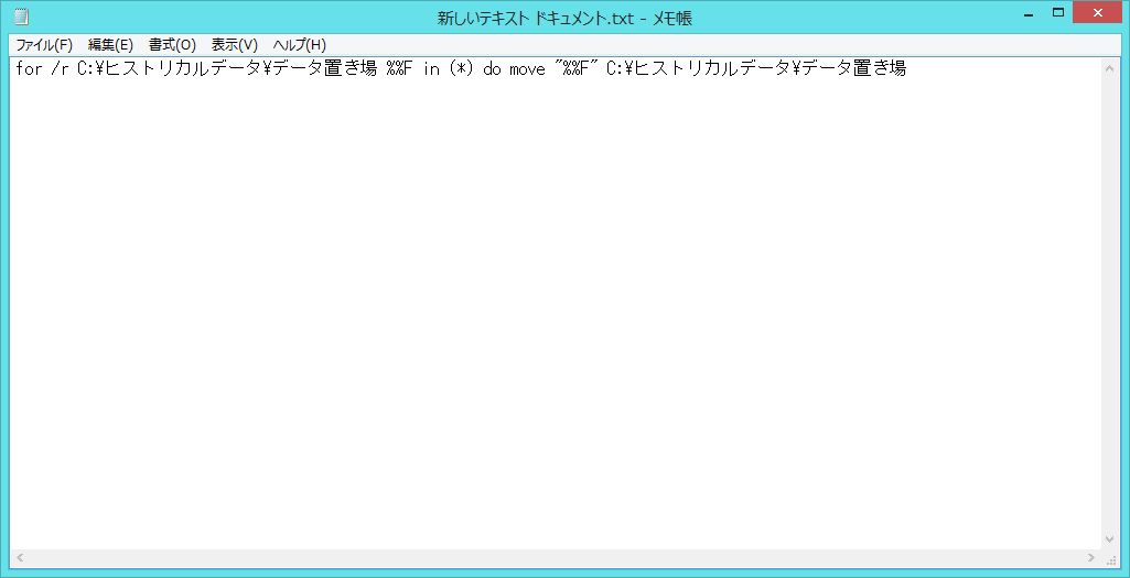 for /r C:\ヒストリカルデータ\データ置き場 %%F in (*) do move "%%F" C:\ヒストリカルデータ\データ置き場