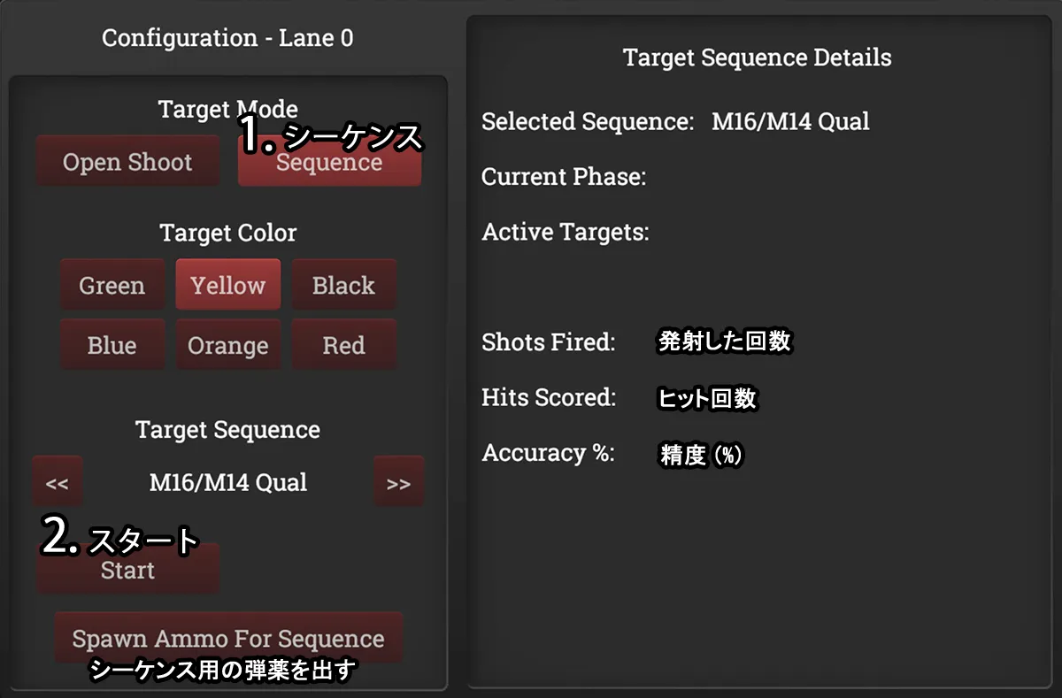 - ターゲットの種類を変更するには、ターゲットを選択してから「Set/Reset Target」。このボタンで弾痕も消える。