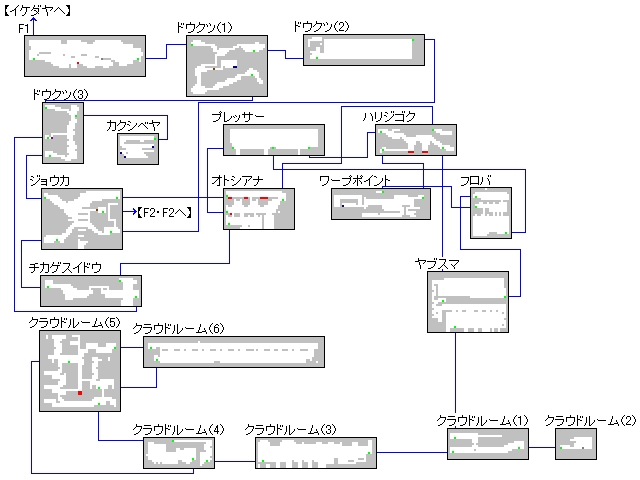 | クラウドルーム(5) | - | 中央の縦穴には見えない即死トラップがある。 |
