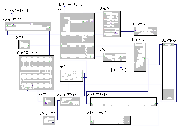 | ガケ | - | キバクソウチに触れるとF2側入口の真上からクマ爆弾が大量に落ちてくる。 |