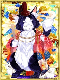 人語をしゃべり二本足で歩く猫の精霊。