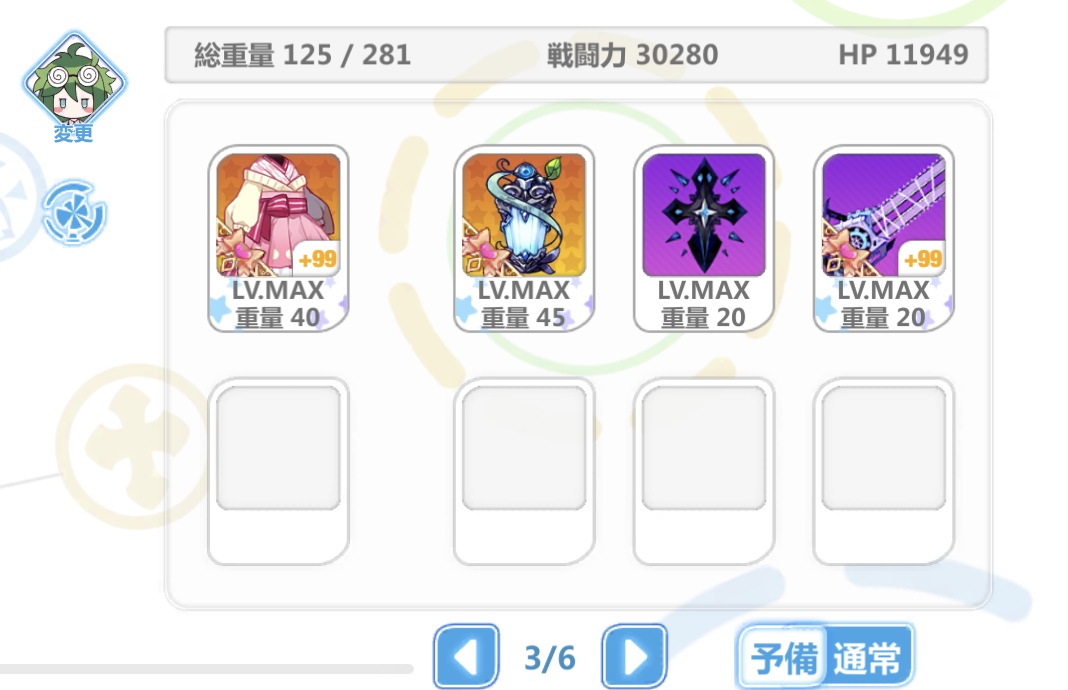 これらを一つの編成にまとめられるのは一部のゴリラだけですので一般学園生の大半は予備装備が必要となります。