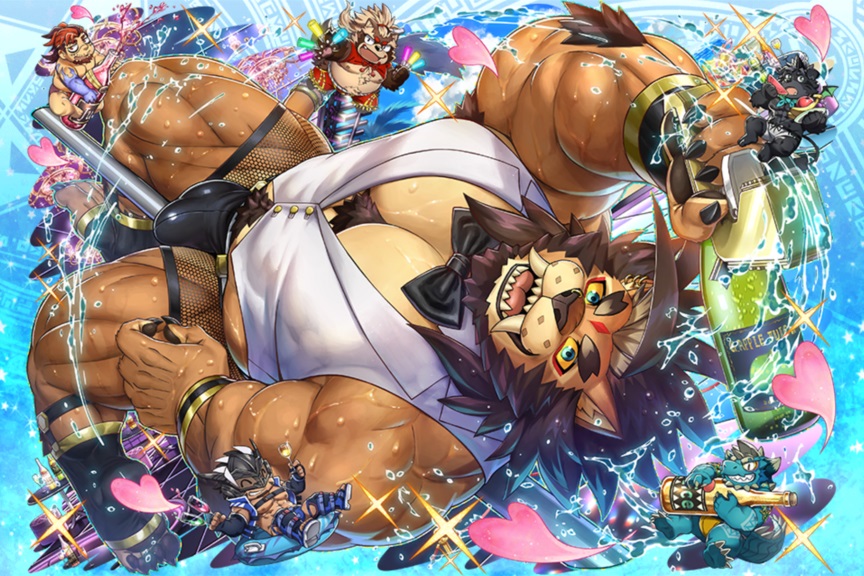 いつだって最高に刺激的な夏をお届けしたいダンサーホスト、バロン。いつもより挑戦的な笑みを浮かべ、チップは今にもマズル先が触れそうな距離で口渡し。他に遅れを取ればギルドの沽券にかかわると、尻尾をお客さんへと絡め、指名を求める。ショウダンサーとして自分の魅せ方をよく理解している彼は、ホストとしても全力を遺憾なく発揮。お客さんたちも負けじとすべてを捧げ返す勢いで彼を指名するとか。ならばもっともっと楽しませて、アゲてアゲて更に捧げ返しまくるしかない。イタチごっこで青天井になっていく両者の捧げ合いの終着点は果たしてどこか。そんな中、彼の中でまだ足りない、この季節が名残惜しい、そんな欲望がふと芽生えた。それが自身の「役割」として、本当に「善いこと」なのかはわからない。少なくともまだ最高ではない、そのもどかしさを愛おしみつつ、今日も盛り上げコールをアゲてゆく。