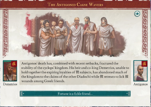 トラキアやマケドニアを蹴散らしたアンティゴノスが死にました。