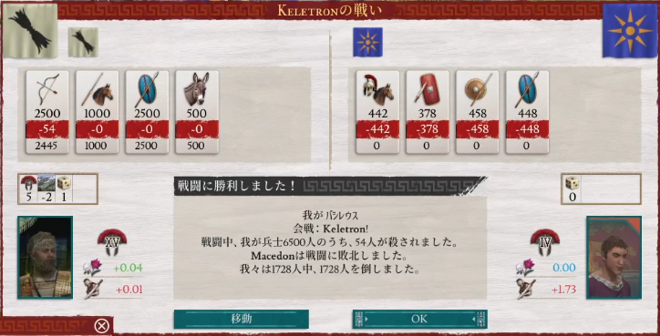 開始時点では脅威だったマケドニアも、もはや相手ではありません。