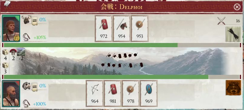 地形ペナルティで軍事能力差のボーナスが相殺されました。