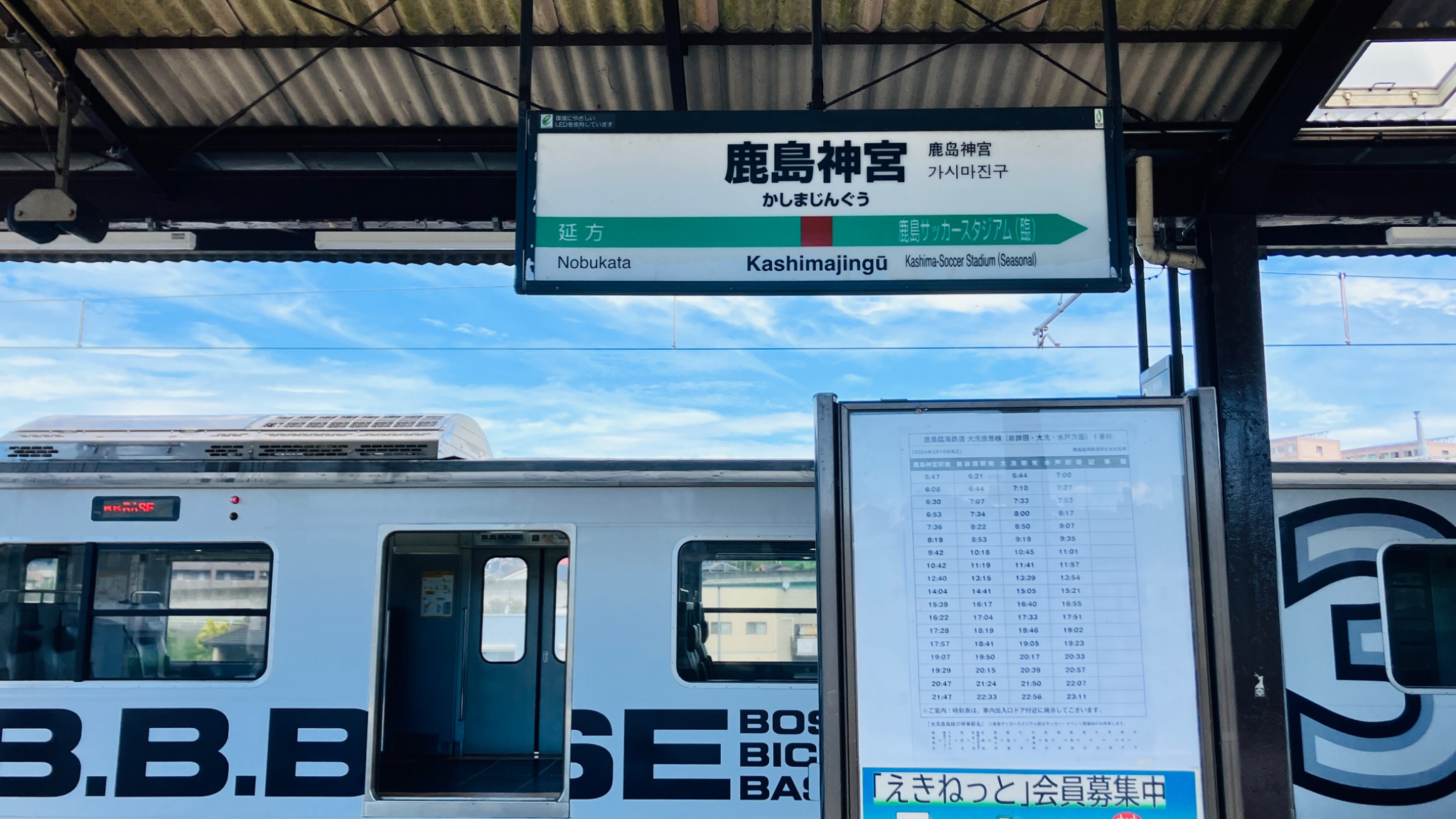 | 総武線・成田線・鹿島線 | 両国-鹿島神宮 | 不明 | 快速 | 鹿島神宮 | 209-2200 | J1 | B.B.BASE佐原・鹿島 |
