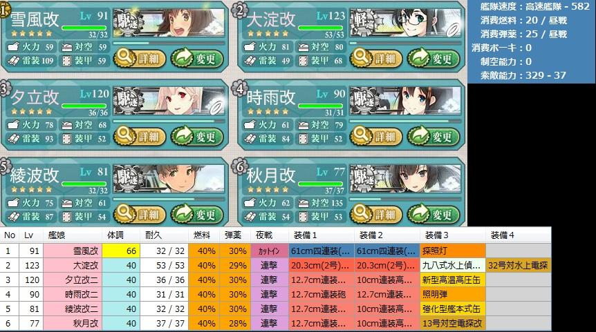 3-5 非常に資源に優しい編成例 軽巡洋艦1+駆逐艦5